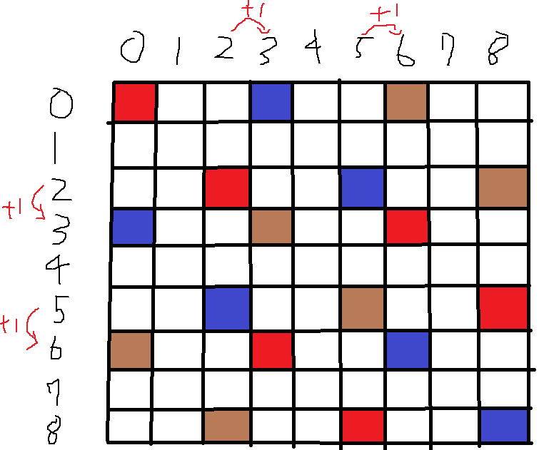 if (paper != matrix[row][col]) return 2