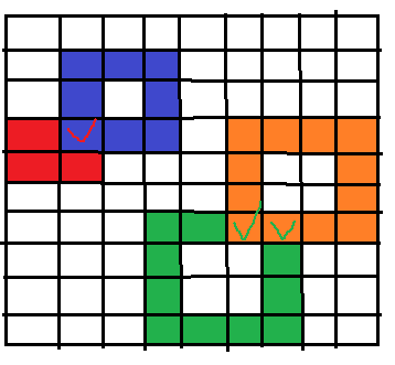 따라서 집합의 수를 구하기 위해 Union-Find를 떠올릴 수 있으며, 겹치는 직사각형의 점들은 모두 연결되어 있기 때문에 인접한 곳을 모두 탐색하는 BFS, DFS로도 해결할 수 있게 되는 겁니다! 탐색 함수를 호출한 횟수가 집합의 개수가 됩니다.